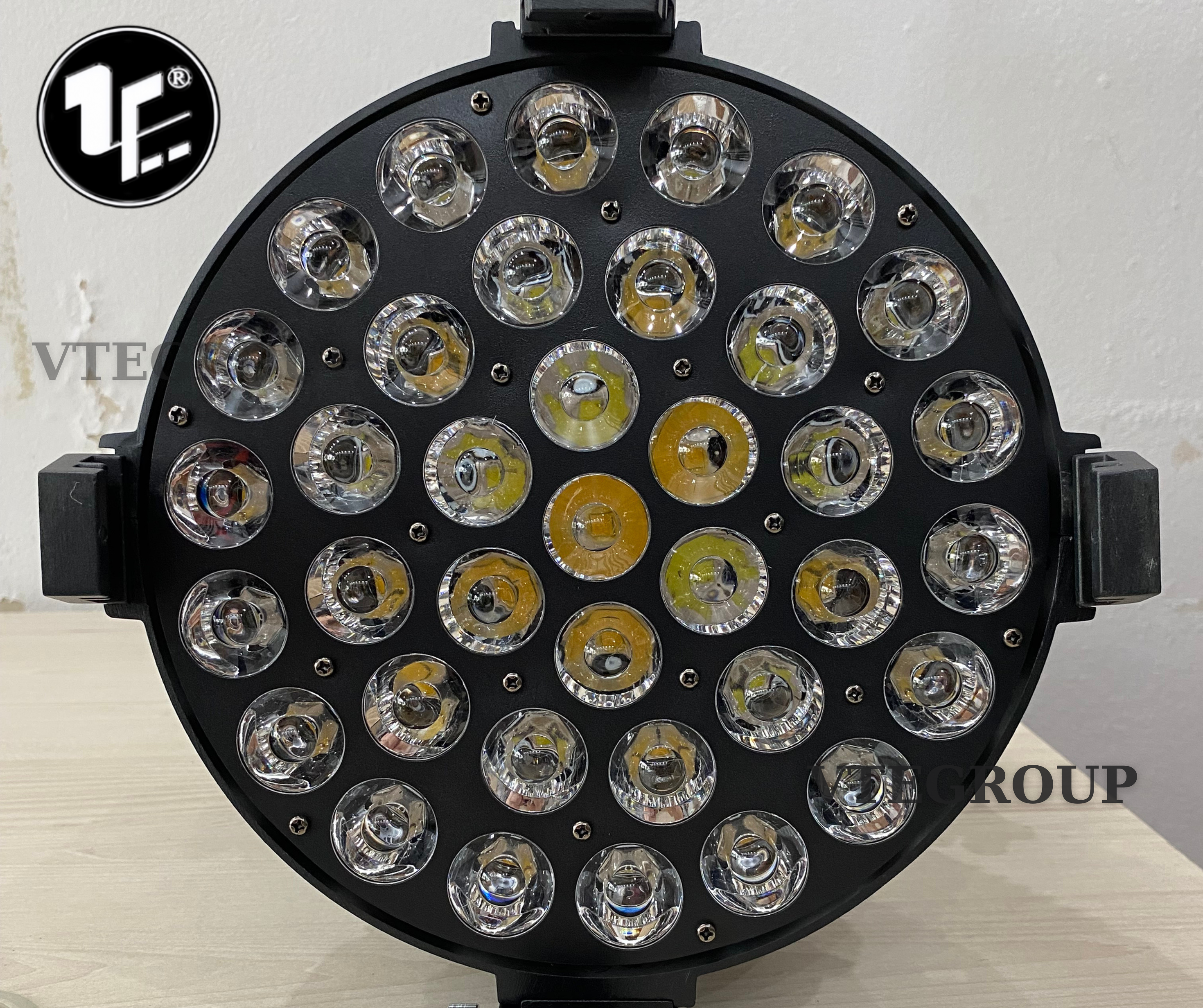 Sở hữu 37 bóng LED, mỗi bóng công suất 15W, tổng công suất lên tới 555W, VTE D37 mang đến nguồn sáng khổng lồ. Điểm đặc biệt của sản phẩm là khả năng chiếu sáng xa và rất xa nhờ hệ thống thấu kính và bóng LED chuyên dụng . Ánh sáng được phủ rộng, đồng đều, đảm bảo mọi ngóc ngách của không gian đều được thắp sáng rõ nét, từ những chi tiết trên sân khấu đến khu vực khán đài phía xa.